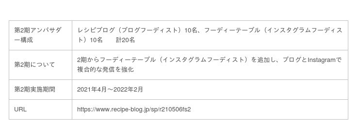 日頃から食や料理の関心が高く、発信力のある「フーディスト(※)」で結成されたアンバサダープログラム。アンバサダーとなるフーディストは、日本最大級の料理ブログのポータルサイト「レシピブログ: https://www.recipe-blog.jp/ 」、日本最大級の料理インスタグラマーコミュニティ「フーディーテーブル: https://foodietable.jp/ 」に参加するフーディストたちから選ばれています。