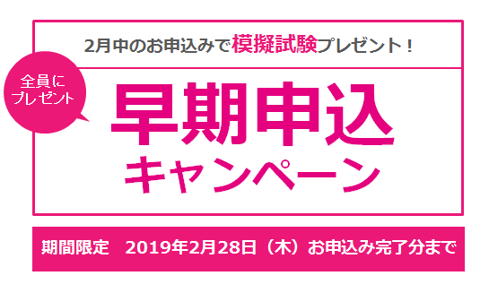 ●早期申込キャンペーン 2月中の申込みで「過去問題含む模擬試験」プレゼント!