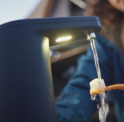 “ポータブル自動給水栓 HYD-WF” の最大の特徴は、あらゆるウォータージャグを給水装置に変え、自宅の水道の蛇口のように必要な分だけを無駄なく給水を可能にすることです。本体には充電式のバッテリーが内蔵されており、1回の充電で150リットルの給水が可能であり、1分間に1リットルの水を吐水する事が出来ます。また、1分間の自動シャットオフ機能により、水のオーバーフローや無駄遣いの心配がなく、地球環境にやさしく安心して使えます。”ポータブル電動給水栓” により、アウトドアで手を洗ったり、歯をみがいたり、水筒に水を入れたり、料理用の鍋に水を入れたりする際の給水作業をボタンひとつで可能にします。