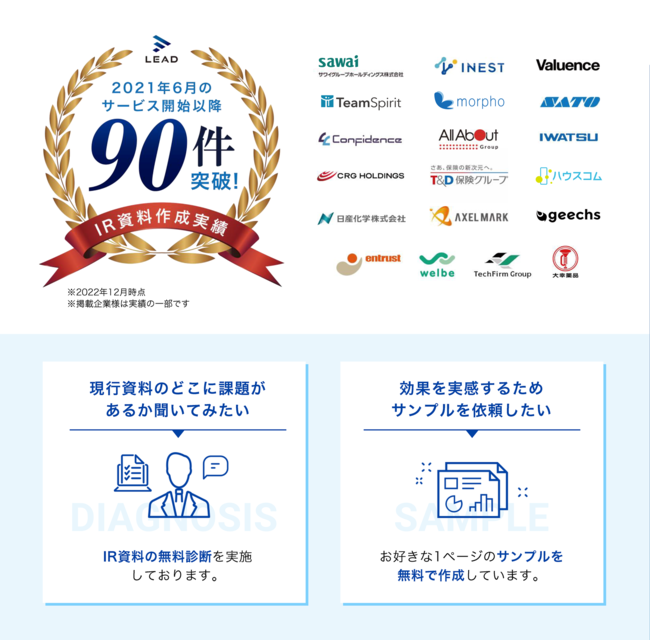 内製が主流のIR資料を"プロに依頼する"という新しい選択肢 ~LEADのご提案~