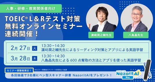 株式会社サインウェーブ(所在地:東京都千代田区、代表取締役:赤池雅光、以下サインウェーブ )は、人事・研修・教育関係者を対象とした無料オンラインセミナーを、2月27日(火)、3月28日(木)に連続開催いたします。プログラムは濱崎潤之輔先生、八島晶先生の特別講義に加え、大学生・社会人向け英語学習アプリ「ELST(R)Biz」を使った英語学習法や法人向けの導入イメージの説明を行います。