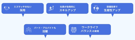 ミスマッチのない採用や社員のスキルアップ、設備投資による生産性アップ、パート・アルバイトの活躍、ワークライフバランスの実現など、助成金を活用することで実現できる会社づくりを支援します。