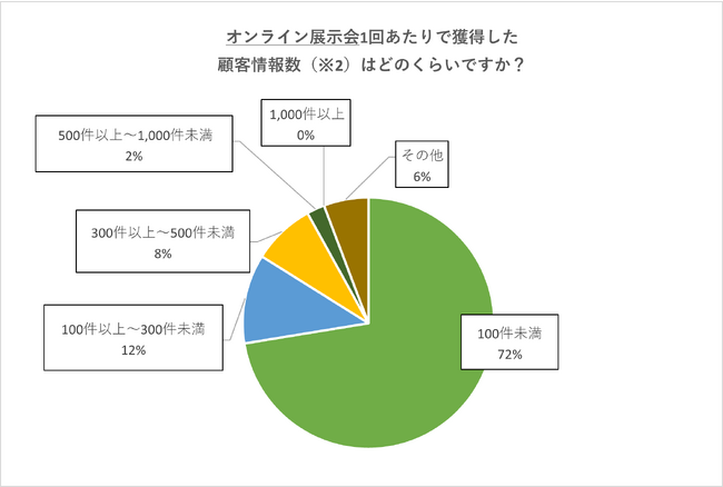 オンライン展示会、獲得した顧客情報件数「100件未満」が72%、獲得した顧客情報から商談に繋げる割合は「0~5%未満」が78%