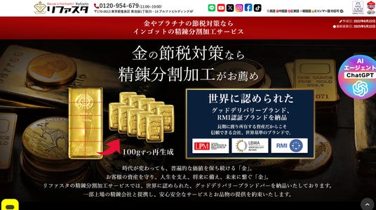 リファスタ(ラウンジデザイナーズ株式会社:東京都豊島区 代表取締役:杉 兼太朗)は、同社が提供する「金地金精錬分割加工サービス」において、2025年6月1日より価格改定およびカード決済導入を実施いたします。また、納期を大幅に短縮した「即分割プラン(100gバー限定・納期約1週間)」の本格提供も開始いたします。