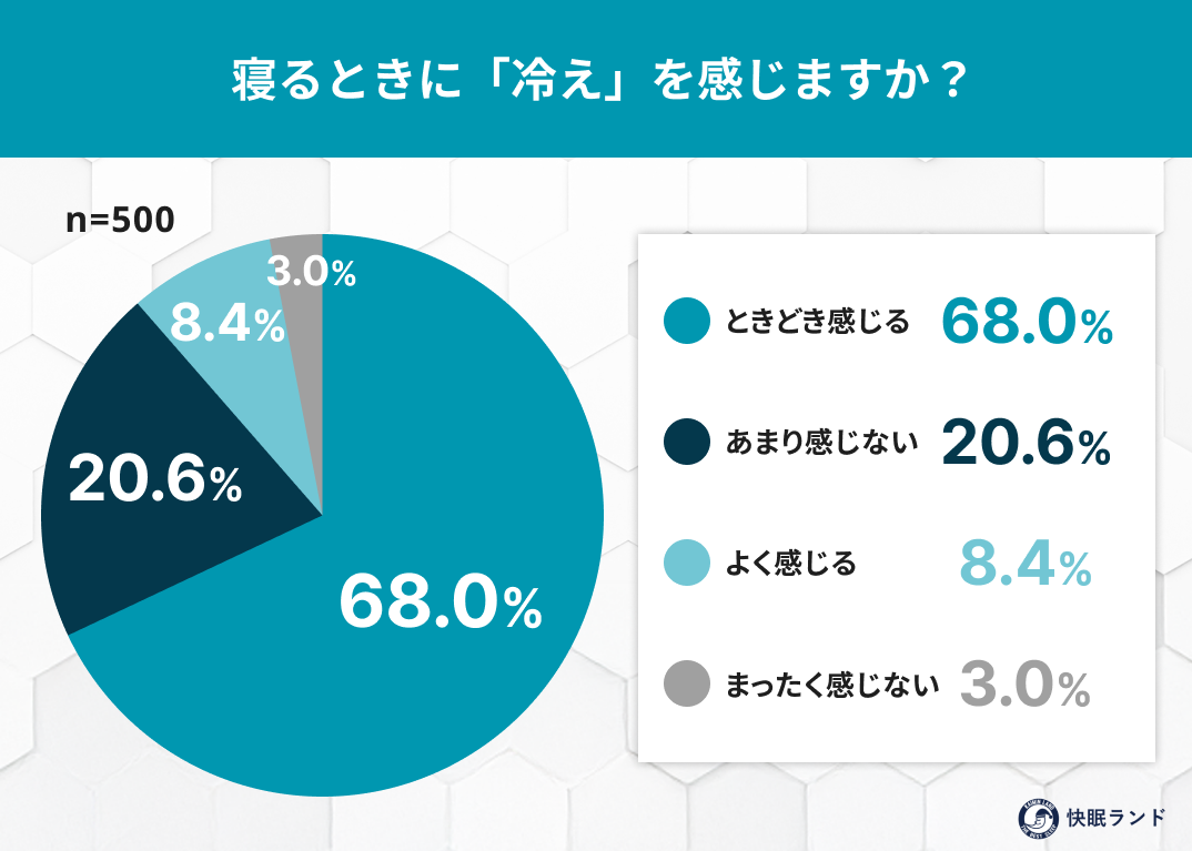 - 約7割(76.4%)が「寝るときに冷えを感じる」と回答