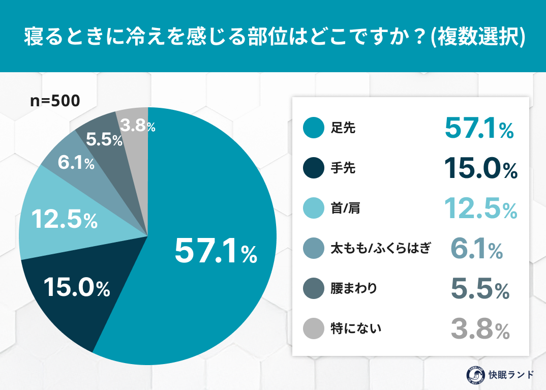 - 冷えを感じる部位は「足先」(57.1%)が圧倒的多数