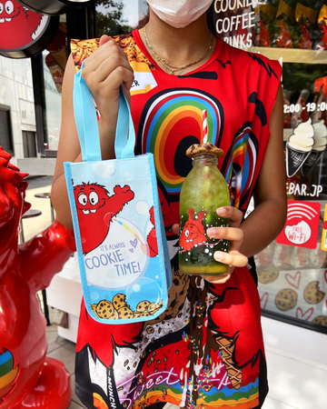 クッキータイムを象徴するキャラクター「クッキーマンチャー」が描かれたCuteな牛乳瓶に、いちごミルクやコーヒーミルクを注いで、焼きたてクッキーで蓋♪ 発売から続く人気アイテムです。