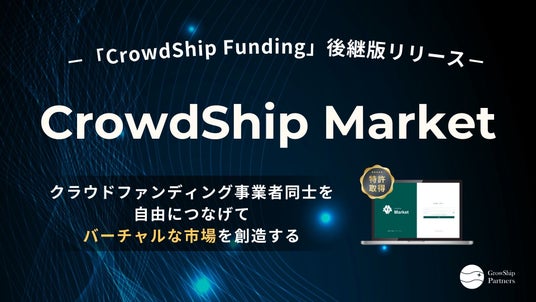 グローシップ・パートナーズ株式会社(本社:東京都港区、代表取締役 松井 晴彦、以下 GSP)はこの度、50社を超える事業者に提供した実績のある「CrowdShip Funding」の後継にあたる、投資型クラウドファンディングシステム「CrowdShip Market(以下、「CSM」)」をリリースしました。CSMでは特許を取得している「事業者連携機能」を通じてバーチャルなクラウドファンディング市場を創造します。これにより、各事業者は他事業者と連携してファンドの組成・募集を行うことができるようになり、単独では実現できなかったサイズのファンドの組成・販売が可能となります。