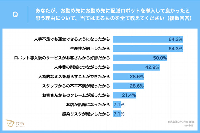 具体的には、「人手不足でも運営できるようになった」(64.3%)「生産性が向上した」(64.3%)などのメリットを実感していることが明らかとなりました。