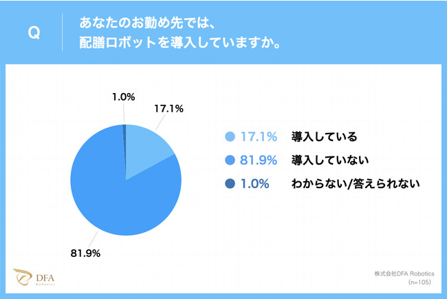飲食店DXを推進するロボティクスソリューションカンパニーである株式会社DFA Robotics(東京都渋谷区、代表取締役 波多野 昌昭)は、飲食店の配膳ロボットおよびアルバイトスタッフについてアンケート調査を飲食店店長105名に行い、その結果と共に、飲食業界の抱える課題とアルバイト探しのトレンド、またサービスロボット活用について「飲食業界に関する2022年の総括と2023年の展望レポート」を発表したことをお知らせいたします。