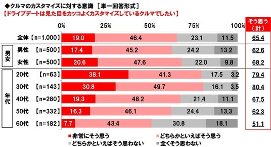 - 「ドライブデートは見た目をカッコよくカスタマイズしているクルマでしたい」65%、30代では80%