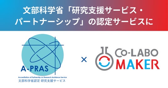 株式会社Co-LABO MAKER(本社:宮城県仙台市、代表取締役:古谷優貴、以下「当社」)が運営する、研究開発を加速する研究リソースシェアリングプラットフォーム「Co-LABO MAKER(コラボメーカー)」が、文部科学省の「令和5年度研究支援サービス・パートナーシップ認定制度」の認定サービスに採択されました。