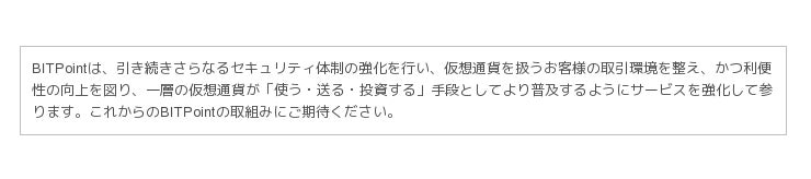 BITPointは、昨年の平成29年12月に仮想通貨交換業者として警視庁「サイバー犯罪に対する共同対処協定書」を締結し、相互協力連携を強化することにより迅速なサイバー犯罪への対処を行って参りました。