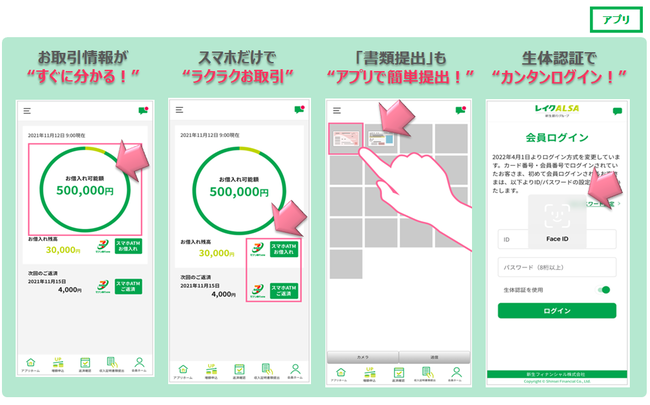 この度、当社はレイクALSAをご利用されるお客さま向けの公式アプリ「e-アルサ」、およびWebサイトの全面リニューアルを行いましたのでお知らせいたします。新生銀行グループは、2022 年 5 月 13 日に公表した中期経営計画「新生銀行グループの中期ビジョン(以下、「中期ビジョン」)」の実現に向け、「最新テクノロジーの積極的な活用」を推進しております。その一環として、今回のリニューアルでは、お客さまにもっと『簡単・便利』に、もっと『安心・安全』に、継続してご利用いただけるよう、デザインの刷新と新機能の追加を実施しております。またリニューアルと併せて、一時停止していましたスマホATM取引(お借入れ)およびWeb返済サービスを再開いたします。