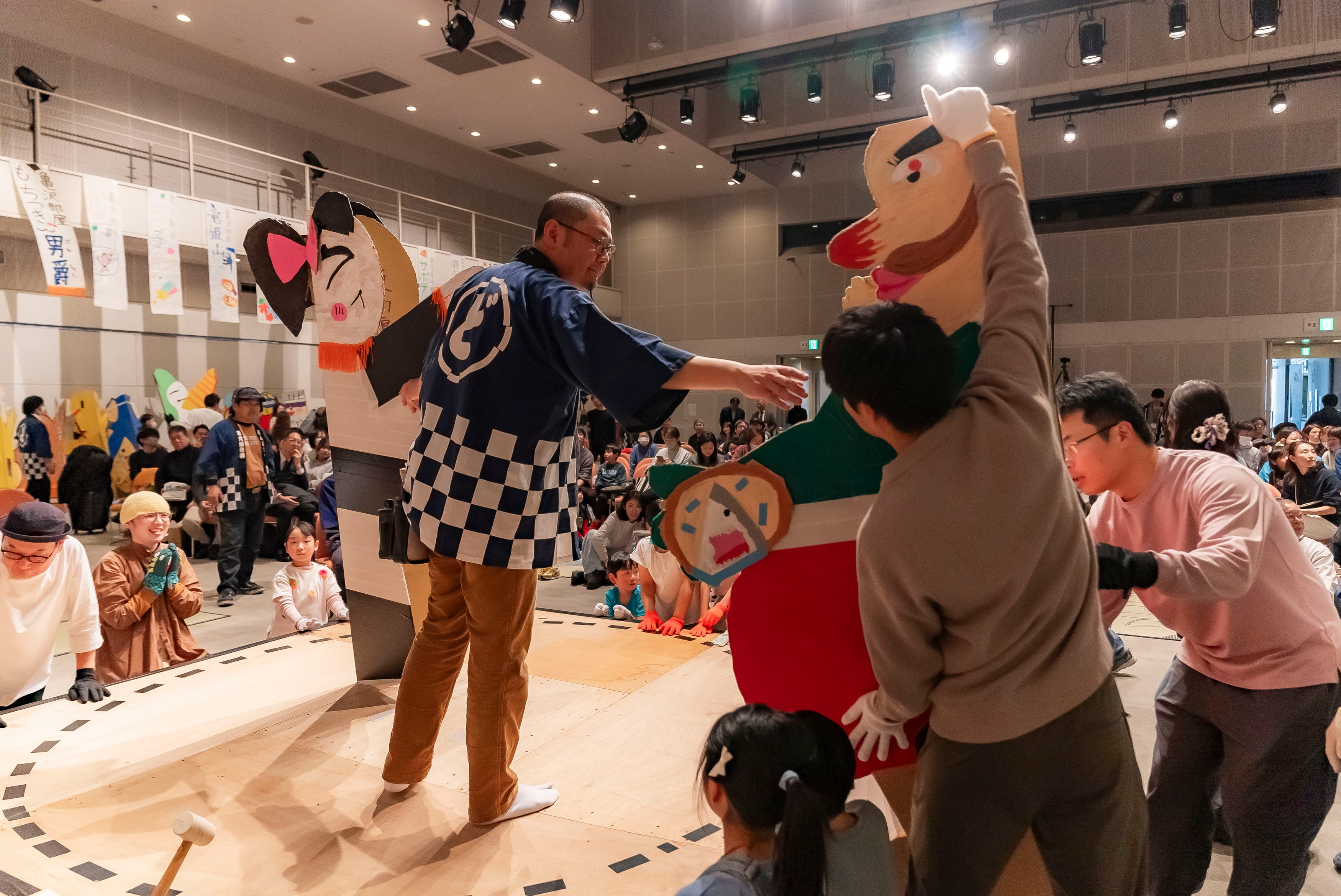 アートプロジェクト「隅田川 森羅万象 墨に夢」(通称すみゆめ)では今年も11~12月に、恒例の大人気企画KOSUGE1-16「どんどこ!巨大紙相撲~北斎すみゆめ場所」を実施します。
