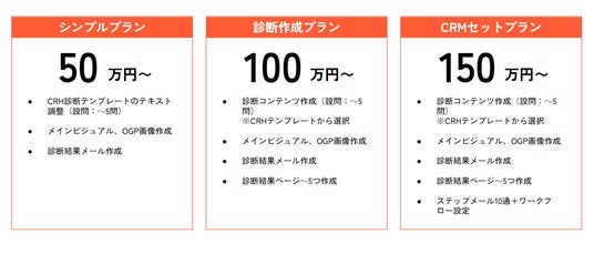 ※診断作成プラン・CRMセットプランの診断ロジックはYES/NO条件分岐フローとスコアリングフローとからお選びいただけます。その他ロジックの場合はオプションとなります。
