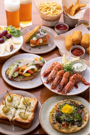 トマトとバジル、パルメザンチーズのカラフルな「ブルスケッタ」(イタリア)や、ベシャメルソースとハムのコロッケにスパイシートマトチャツネを添えた「ジャンボンコロッケ」(スペイン)、すりおろしたポテトで作る自家製ワッフルにスモークサーモンとディル&ケッパーなどを合わせた「ポテトワッフル」(北欧ノルディックスタイル)など、シェフマイケルの料理は、シンプルながら食材の新たな魅力を感じさせてくれるもの。冷えたビールやワインをおともに、シェフ特製の地中海の雰囲気を感じるお料理で午後のひとときをお過ごしください。