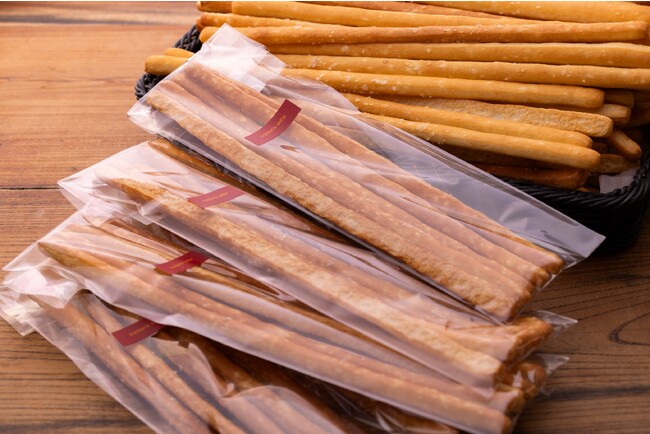 イタリアンレストラン「トラットリアセッテ」でお食事と一緒にご用意する人気のグリッシーニがペストリーブティックでお買い求めいただけることになりました。ベーカーリーシェフが毎日焼き上げるグリッシーニは、クラッカーのようにカリっとした食感で、程よい塩味があります。レストランでもお子様から大人まで大人気。そのままはもちろん、生ハムを巻いたり、チーズと合わせるとビールやワインのお供にぴったりです。30cmほどの長さがあり、ホームパーティーなどの食卓を華やかにしてくれます。