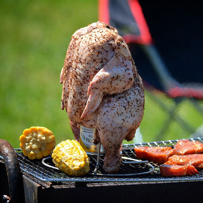 簡単にビア缶チキンが作れるセット。見た目のインパクトが大きな丸鶏は、大人数でのシェアに最適。