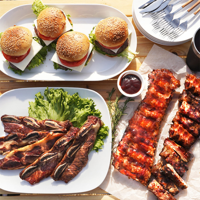 BBQをもっともっと盛り上げたい人におすすめの商品。ハンバーガーやショートリブが入った、アメリカンBBQを実現するセット。