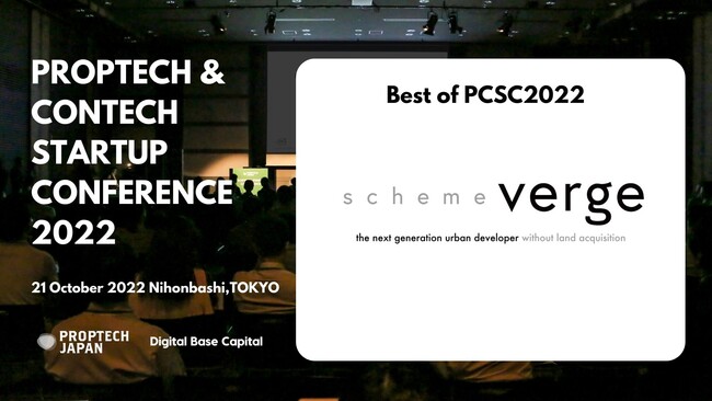 scheme verge株式会社(CEO:嶂南 達貴、以下「scheme verge」)は、デジタルベースキャピタルおよびPropTech JAPANが10月21日に開催した、不動産&建設DXのアジア最大級イベント『PropTech & ConTech Startup Conference 2022』において、「Best of PCSC 2022」を受賞しましたので、お知らせします。