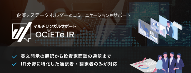 CRGホールディングス株式会社(本社:東京都新宿区、代表取締役社長:古澤 孝、以下 CRGホールディングス)の完全子会社である株式会社オシエテ(本社:東京都新宿区、代表取締役社長 榛澤 慎太郎、以下 オシエテ)は、企業がグローバル展開を行なっていくうえで欠かせない「多言語化」をIR分野に特化した通訳者・翻訳者のみが対応する「OCiETe IR」のサービスを提供することになりましたのでお知らせ致します。