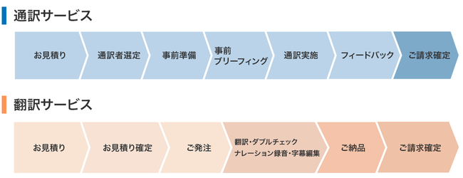 OCiETe IRの依頼フローは通訳・翻訳の実施までに、専門度が高い分野だからこそ、ひとつずつの工程に抜け・漏れがないよう対応いたします。