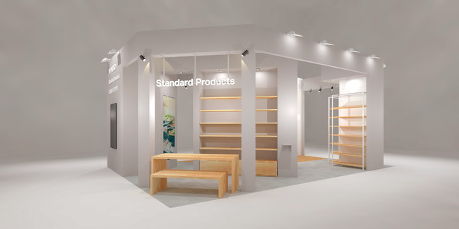 この度の出展では約54平方メートル あるブースのメインにStandard Productsの売場を再現し、店内の雰囲気や主な商品をご覧いただけます。Standard Productsが目指すサスティナビリティや環境に配慮した商品開発の強化、国内産業とのコラボレーションによる商品開発などをご説明いたします。