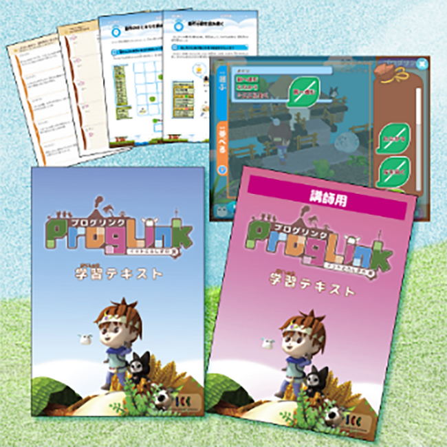 「プログリンク」は、考える過程を大切にした設計の小学生向けプログラミング教材です。1冊単位での買い切り型販売を行っており、45分×20コマでプログラミングの基本を習得できます。講師用の指導ガイドも用意しており、授業への導入もスムーズに行えます。