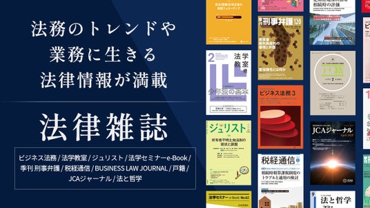 リーガルライブラリーでは、法律実務家が頻繁に利用する信頼できる法律書籍・雑誌を厳選し、実務書から体系書まで豊富に掲載しており、今後も新しい書籍から貴重な古典書籍まで益々の充実を図ってまいります。