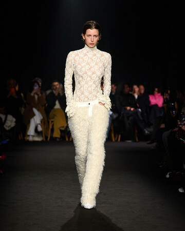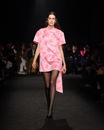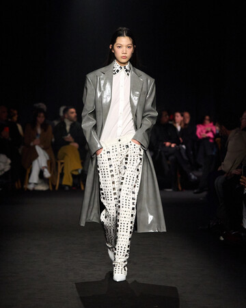 過去は再解釈され、歪められ、”スワン”というブルジョワの遺産はジッパーで引き裂かれ、クリスタルがちりばめられた。MSGMの 洗練された、よりクリーンでタフな進化である:コンクリートグレーとアンスラサイト、クリームとダストピンクの落ち着いたパレットに、 リップスティックレッドとセルリアンブルーのタッチを加え、深みのある黒の世界を表現した。