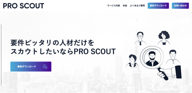 PRO SCOUTは、スカウト配信、求人票/スカウト文面作成、適切なスカウト媒体の提案などを通して、企業のダイレクトリクルーティングを支援するサービスです。