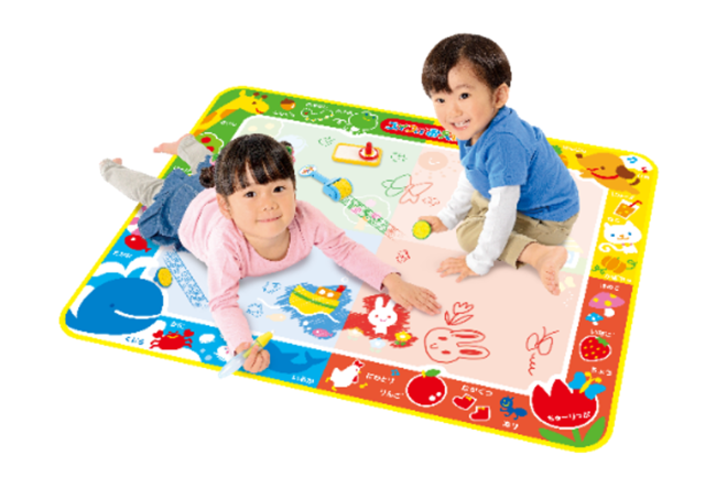 「スイスイおえかき」は、お水のペンで周囲や家を汚さずのびのびおえかきができて、乾くと消えるから何度でもくり返しあそべるロングセラーおえかき玩具です。2000年に販売がスタートし、「2016年日本おもちゃ大賞エデュケーショナル・トイ部門」や「2019年日本おもちゃ大賞イノベイティブ・トイ部門」を受賞しています。2003年から海外輸出がスタートし、今では50か国で販売しています。アメリカ・イギリス・ドイツなどで、すぐれた知育玩具に贈られる「トイ・オブ・ザ・イヤー」を受賞し高い評価をいただいています。