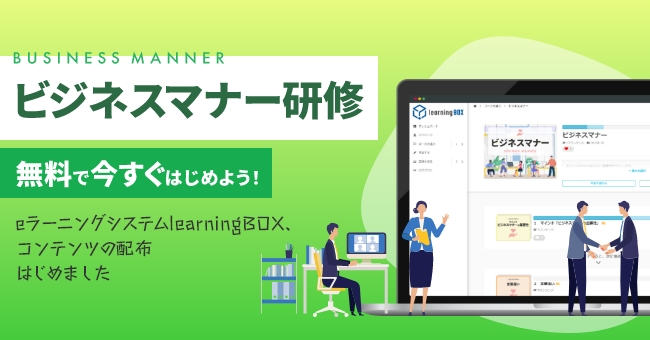 龍野情報システムでは、企業の新人研修やリスクマネジメント強化に貢献することを目的として”誰でも簡単にWEB学習環境が構築できる”eラーニングシステム「learningBOX」(ラーニングボックス)に無償の学習コンテンツ第二弾として「ビジネスマナー」のコンテンツを無償で搭載いたします。