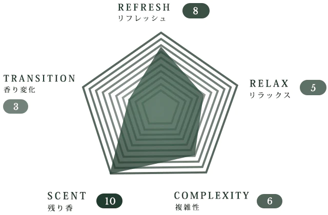 シトロネラを中心に虫の苦手なすっきり系の香りを中心としつつ、ふと深呼吸したくなるような奥行きのある香りに仕上げました。