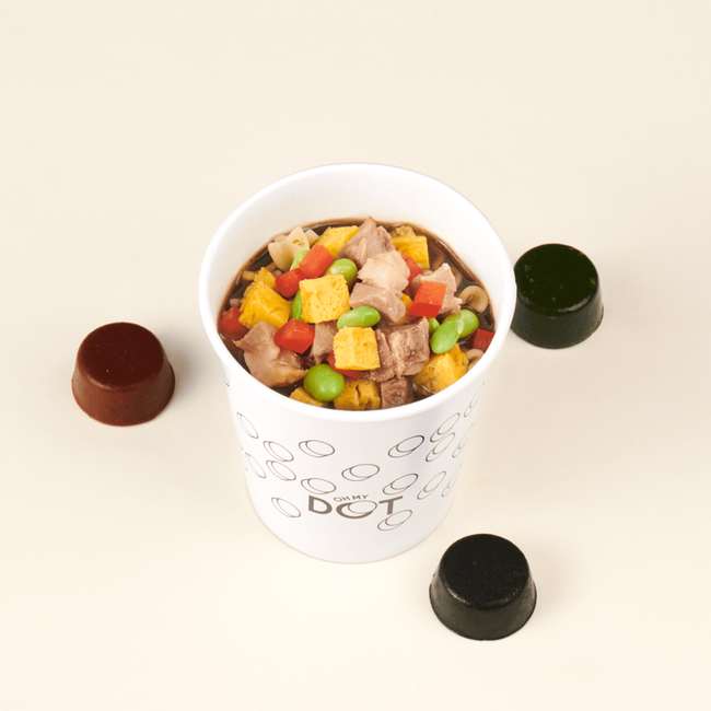 『oh my DOT』は“スープDOT”と呼ばれる独自形状のスープ10種類と3種類の麺を組み合わせて自分好みの美味しさを楽しめるスープヌードル専門店です。調理ロボット「N-Robo」を導入することで、膨大なメニューカスタマイズへの対応が可能となりました。また、最大の特徴である“スープDOT”は、野菜や魚介など素材の旨みを活かし、様々な素材を丁寧に調理して玉状に固めた当店オリジナルのスープの素で、味わえるスープで飲み切れます。飲み切れるスープにすることで、麺もスープも主役の、新感覚「スープヌードル」が誕生しました。