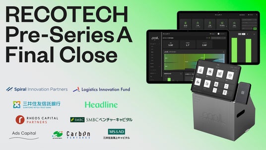サーキュラーエコノミーを実現するデータプラットフォーム「pool」を提供するレコテック株式会社(本社:東京都千代田区、代表取締役:野崎 衛、以下「RECOTECH」)は、Spiral Innovation Partnersをリード投資家として、三井住友信託銀行、Headline Asia、Rheos Capital Partners、ADS Capital、Carbon Ventures(QRインベストメント)、SMBCベンチャーキャピタル、三井住友海上キャピタルを引受先とする第三者割当増資を実施し、プレシリーズAファイナルラウンドでの資金調達を完了いたしました。