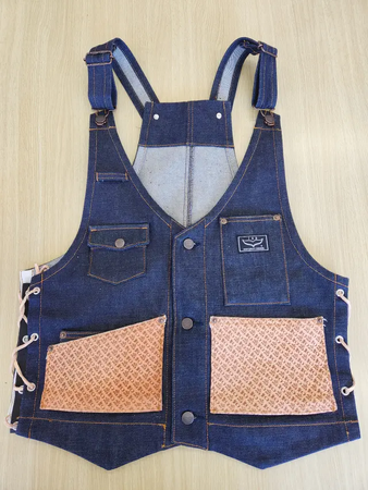 高知で頑張る高校生が、瑞々しい感性と情熱で企画・開発したジビエ革とジーンズ生地のお洒落なキャンプベストです。駆除された野生害獣を「革」として利活用しています。実利はもちろん、アウトドアシーンをオシャレで快適に過ごす意匠が凝らされています。