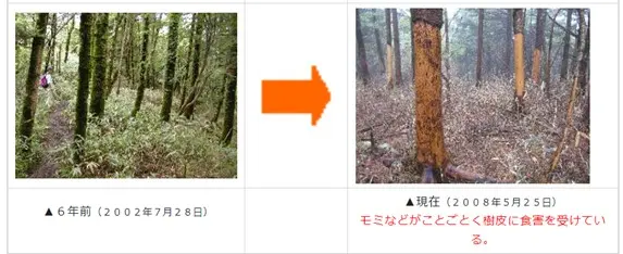 特にシカは樹皮を食べ木を枯らし、枝葉や下層植物を食べ尽くすことで土壌流出に拍車をかけます。山が荒れ細ると、ちょっとした雨や台風でも崩れ川を濁らせます。濁った川は海に土砂を堆積させ海の生態系にも悪い影響を及ぼします。