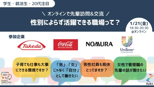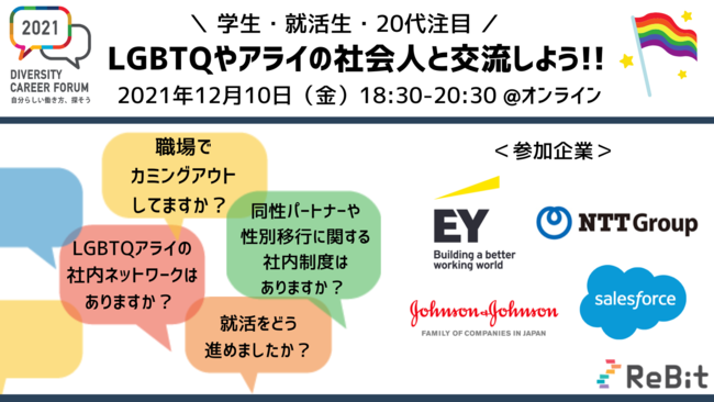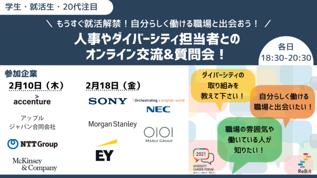 なお、本イベントは、国内最大級のダイバーシティに関するキャリアフォーラム『DIVERSITY CAREER FORUM 2021』の関連イベントです。