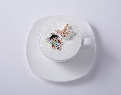まことちゃんの大好物「ダイフク」をイメージしたあんこラテ。
