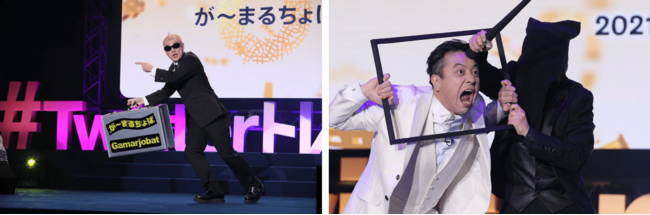 大賞本編では今年の「#Twitterトレンド大賞」20位から1位までの発表に加え、事前番組で扱った「アニメ」、「スポーツ」、「ゲーム」、「ニュース」の4つのジャンルで盛り上がったワードや、最多リツイートや最多いいねがついた投稿などを表彰する部門賞を発表しました。表彰の合間では、今年Twitter上で話題となったパントマイムパフォーマーのが~ まるちょばさん、GABEZさんが登場し、パフォーマンスを披露しました。今年のM-1王者である錦鯉も登場し、会場を大いに盛り上げました。