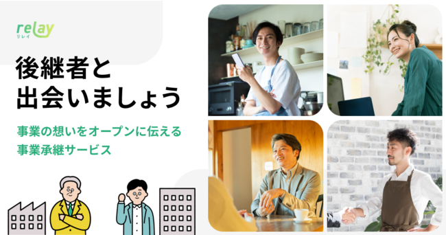 「クラウド継業プラットフォーム relay(リレイ)」では、2020年7月より、後継者問題に悩む事業者を、「事業承継をオープンに。」というスローガンのもと、事業者の顔や名前、想いをオープンにした公募型の事業承継を通して支援してきました。