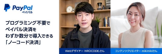 グローバルなオンライン決済サービスのプラットフォームおよびテクノロジーリーダーであるペイパル(PayPal Pte. Ltd. 本社:シンガポール、東京支店 日本事業統括責任者:ピーター・ケネバン、以下「ペイパル」)は、今年4月にリリースした「ノーコード決済(支払いリンクおよびボタン)」について、テック系YouTuberとして注目されている、コンテンツクリエイターのmikimikiさんとWebデザイナーのHIROCODE.さんの2人とコラボレーションし、その魅力や活用ポイントを解説する動画を公開しました。