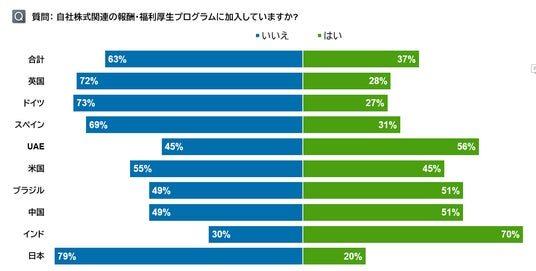 制度拡大が待たれる自社株式を利用した報酬・福利厚生制度は最も低い普及率