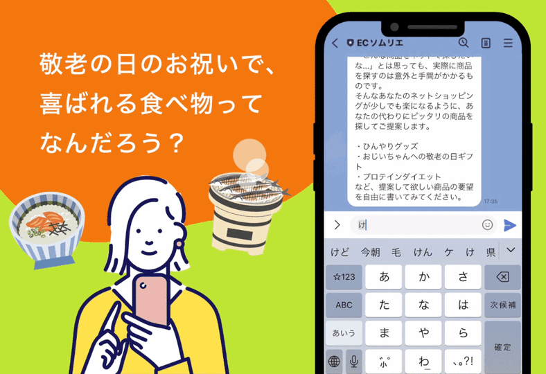 LINEでテキストを入力するだけで、希望の商品を提案。