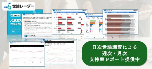 内閣支持率・政党支持率の日次推移データグラフ、年代別集計など、より詳細なレポートは世論レーダー公式サイトにてPDFファイルを販売しております。