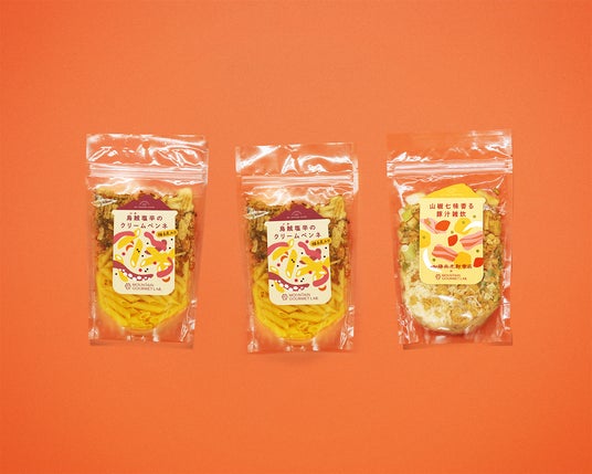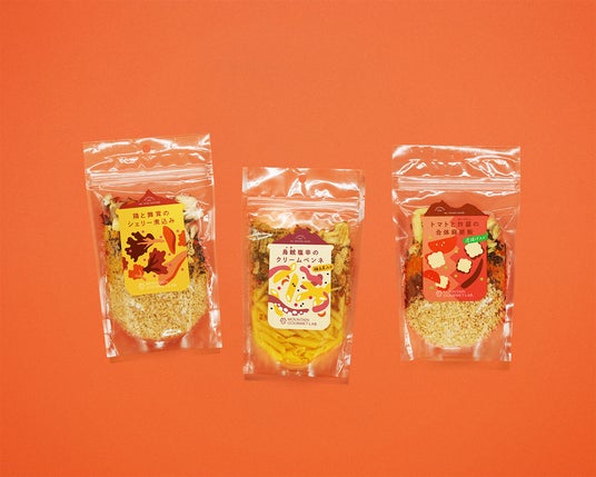 作った料理をただ乾燥させただけでなく、乾燥も調理の一つと捉えるからこそ出来上がる今までになかった「これが食べたい」と思える料理を、ゼロから考えて作っています。試作期間は2年超え。素材ごとに乾燥方法を変えたり、調味料の配合タイミングを乾燥を見越して調整するなど、細部まで徹底したこだわりっぷり。製造方法は特許も取得しました。「これを食べるために山に登りたい。そう思えるようなレシピをつくりたい。」シェフの言葉です。