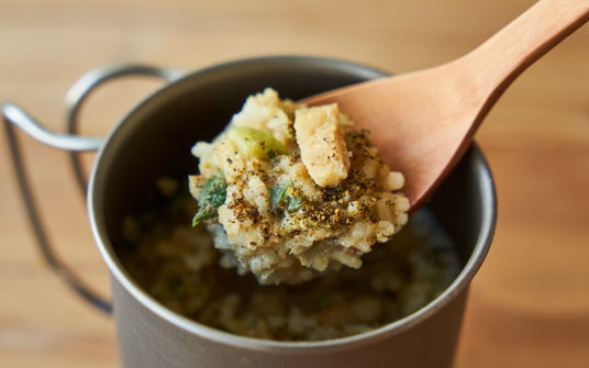 マウンテングルメラボと、水とクッカーさえあれば、どこでも簡単にレストランクオリティーの一皿が楽しめます。