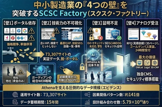 中小製造業335,600施設の大半が、いまだ大手ポータルに依存した受注構造から抜け出せずにいる。ガーディアン、製造業完全特化型サービス「SCSC Factory」を正式リリース。